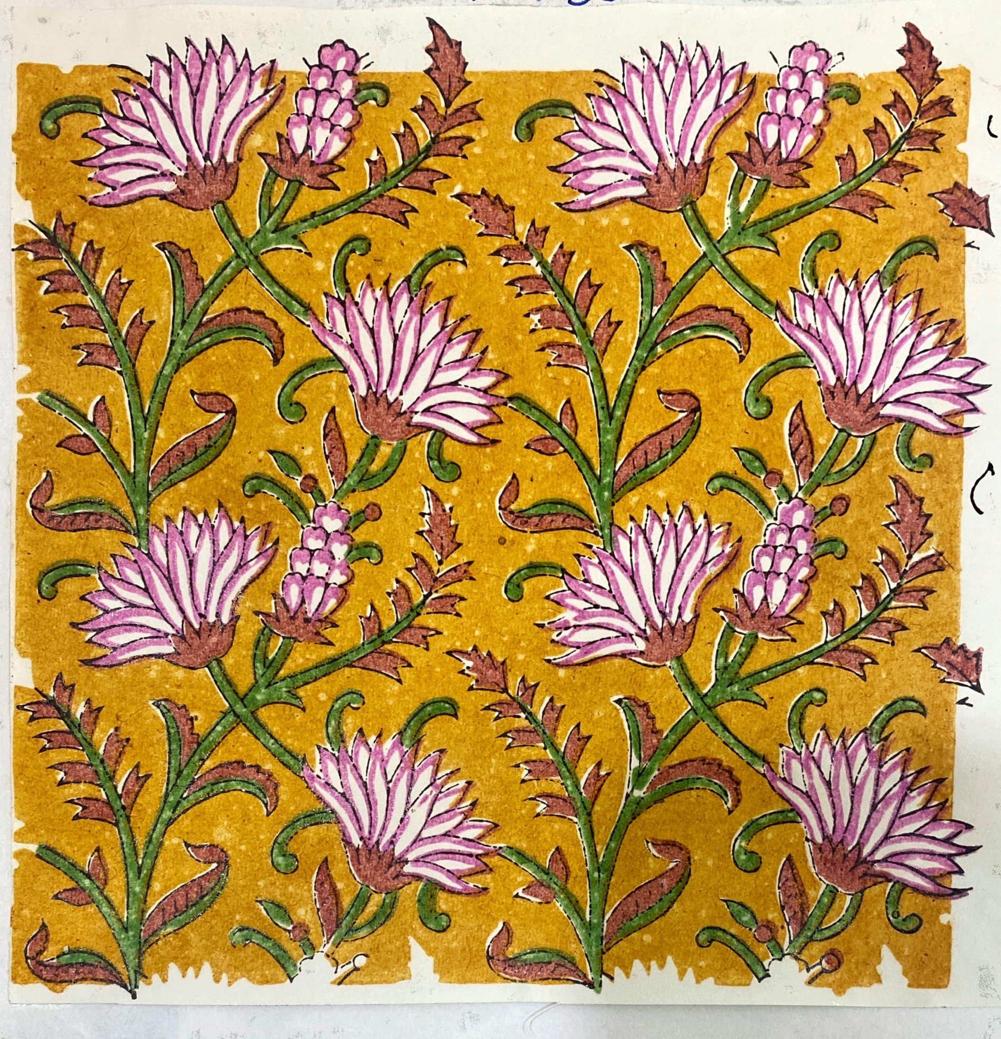 My father can still identify many of our printing blocks entirely from memory. Each design in our archive is coded, and he remembers them almost instinctively. My father, Daddu, as I call him, will pick one up and immediately recognise whether it belongs to the A series of borders, the Z series of geometric patterns, or the “+” marked codes of older floral repeats.