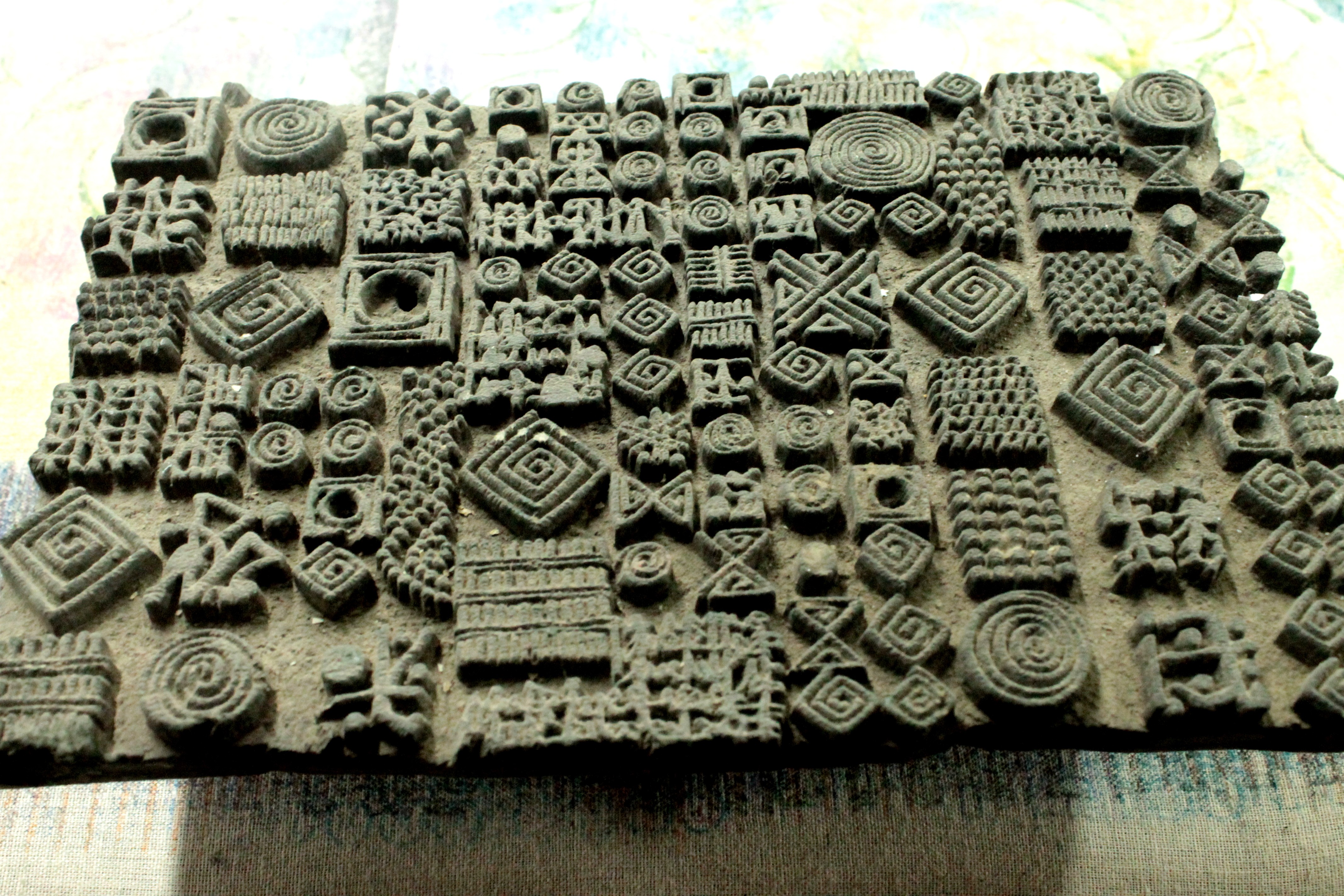 Our family archive holds more than 10,000 hand-carved printing blocks, most in wood and some rare ones in brass. Each one was once pressed onto textiles by an artisan’s hand, repeating rhythmically across fabric to create patterns that travelled across generations.